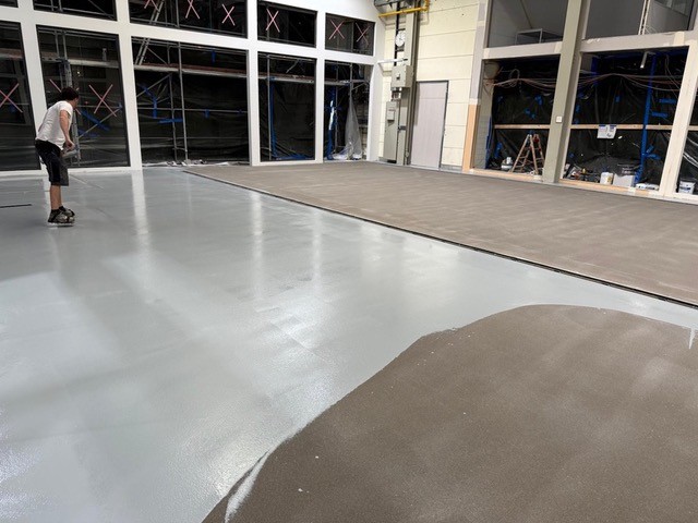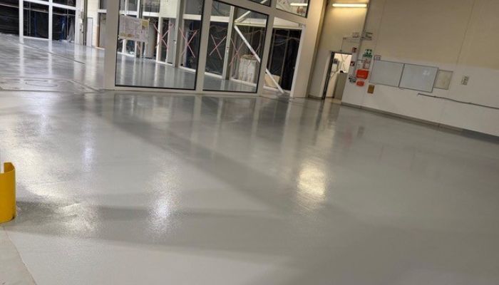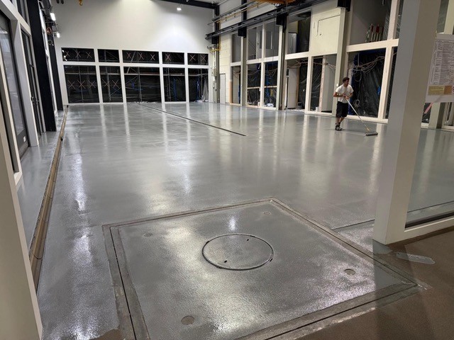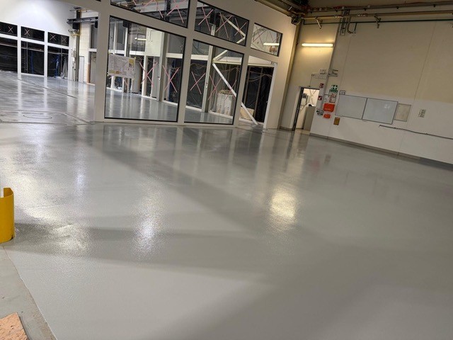 Aus dem alten Betonboden sollte eine völlig neue Oberfläche entstehen. Die Lösung war eine Epoxidharzbeschichtung in rutschfester Ausführung. Farbton: Grau RAL 7001.