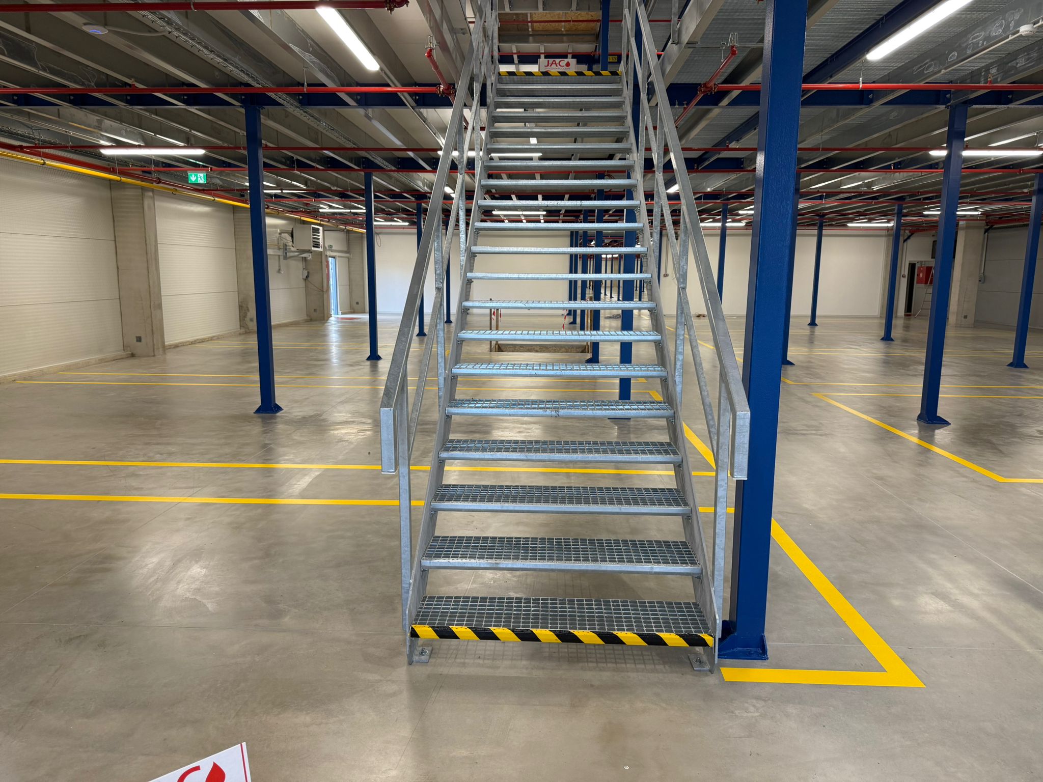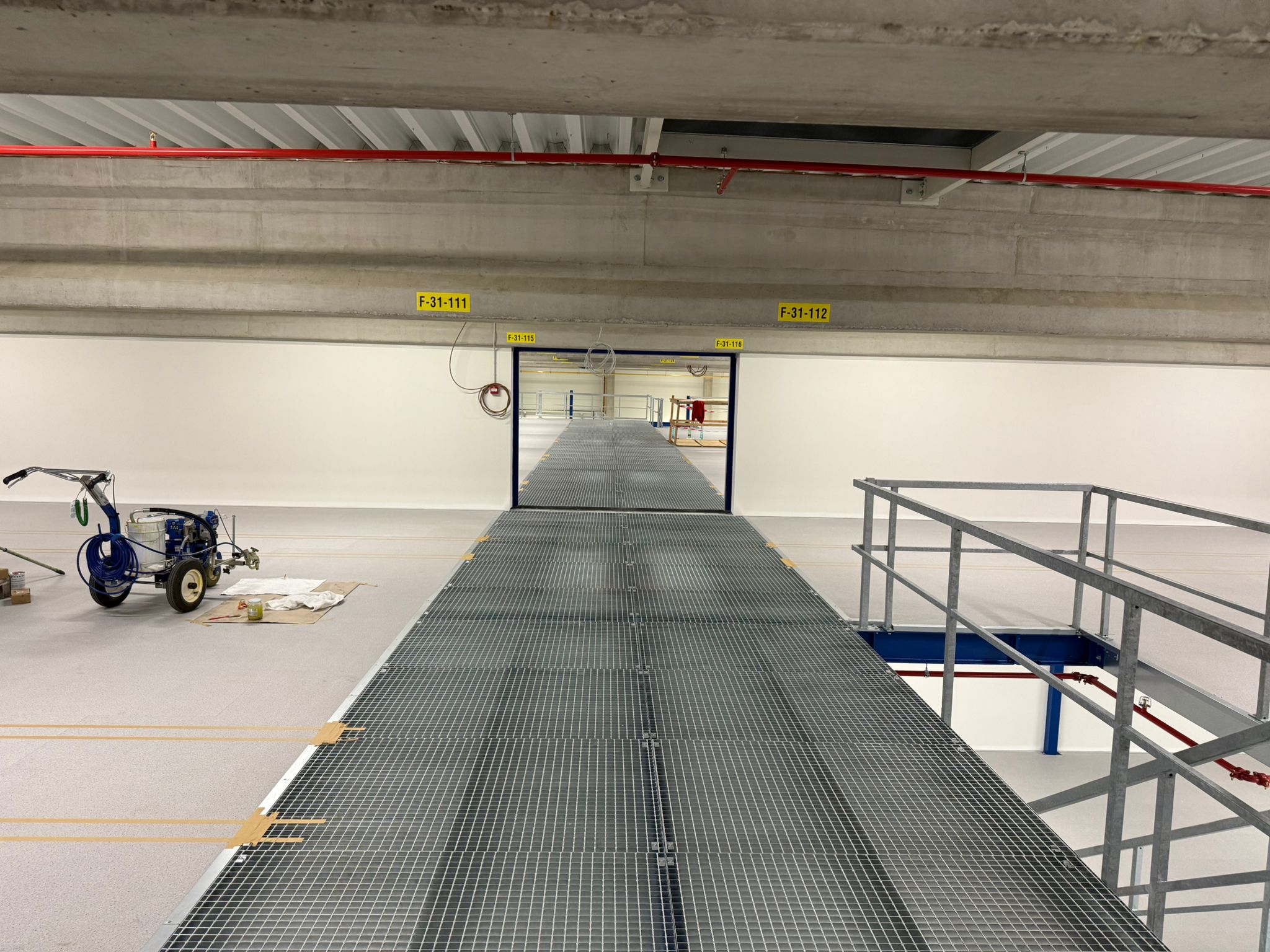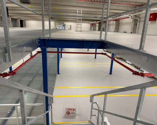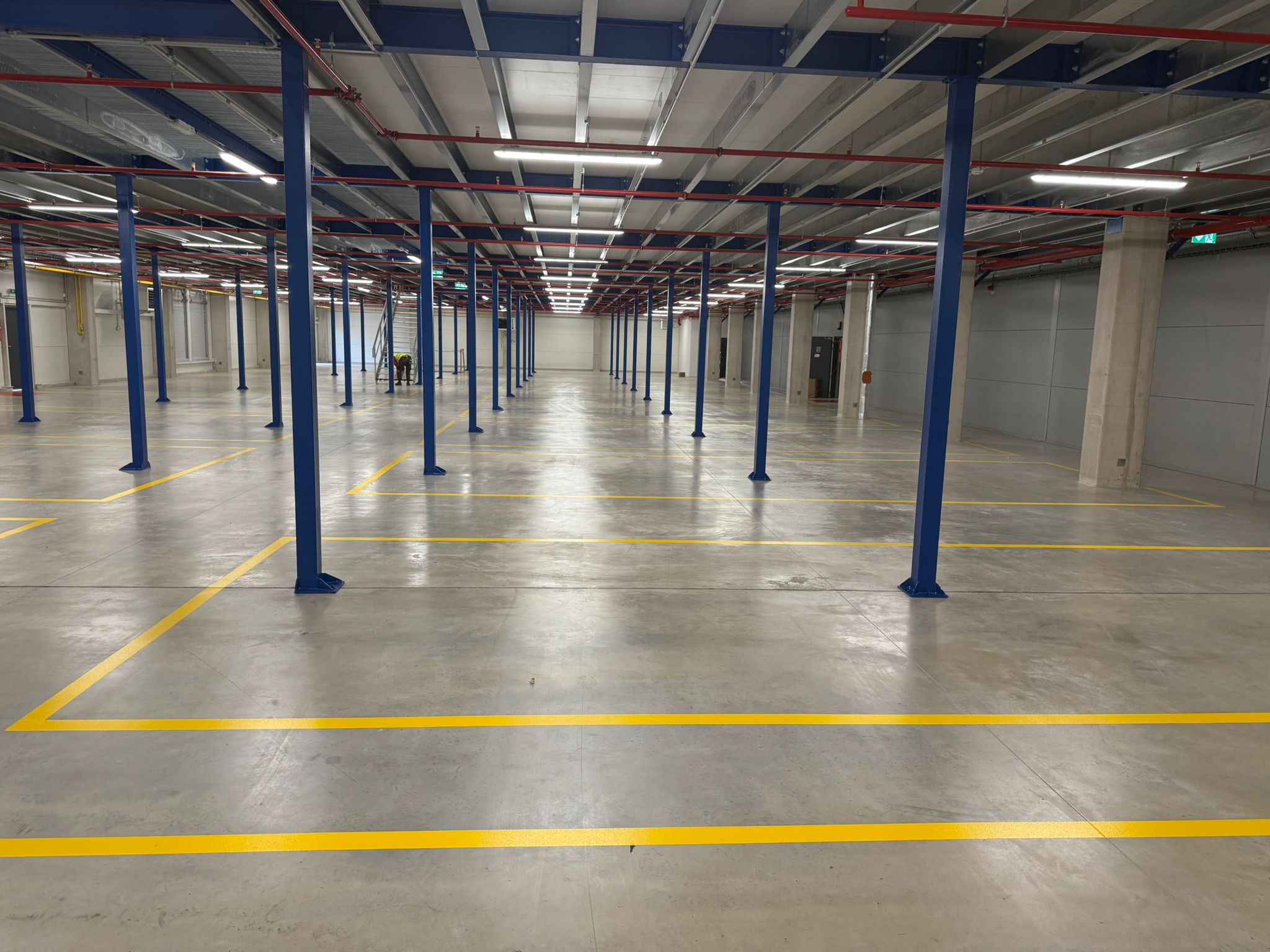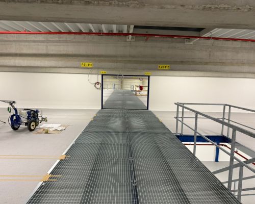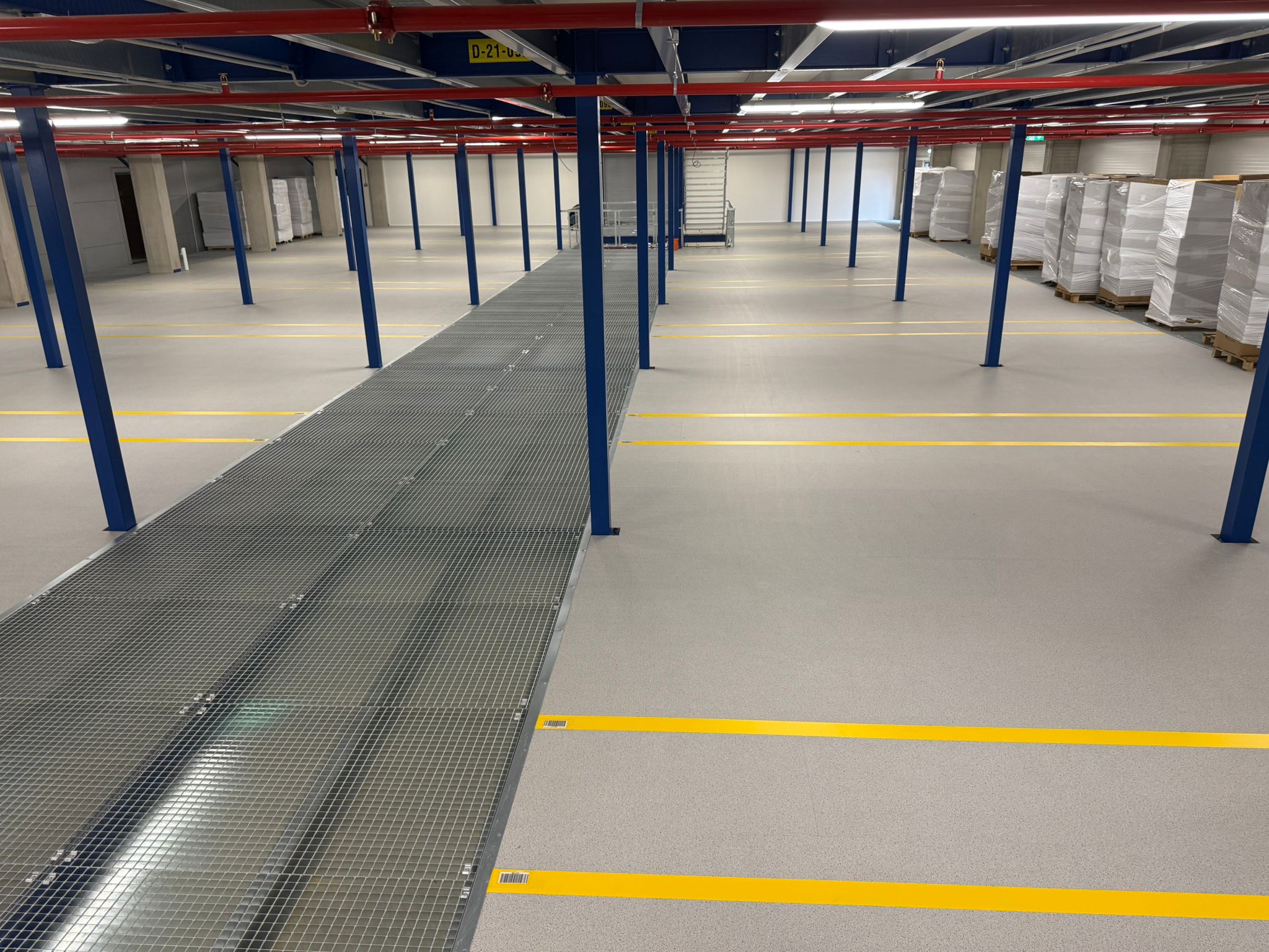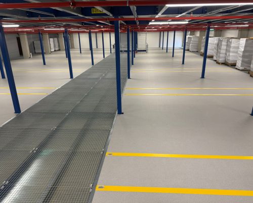 Durchführung der Bodensicherheitskennzeichnung in den Mezzaninbereichen der Logistikhalle