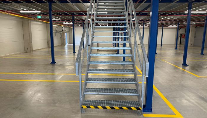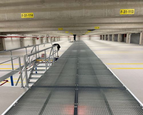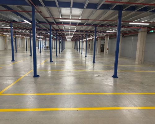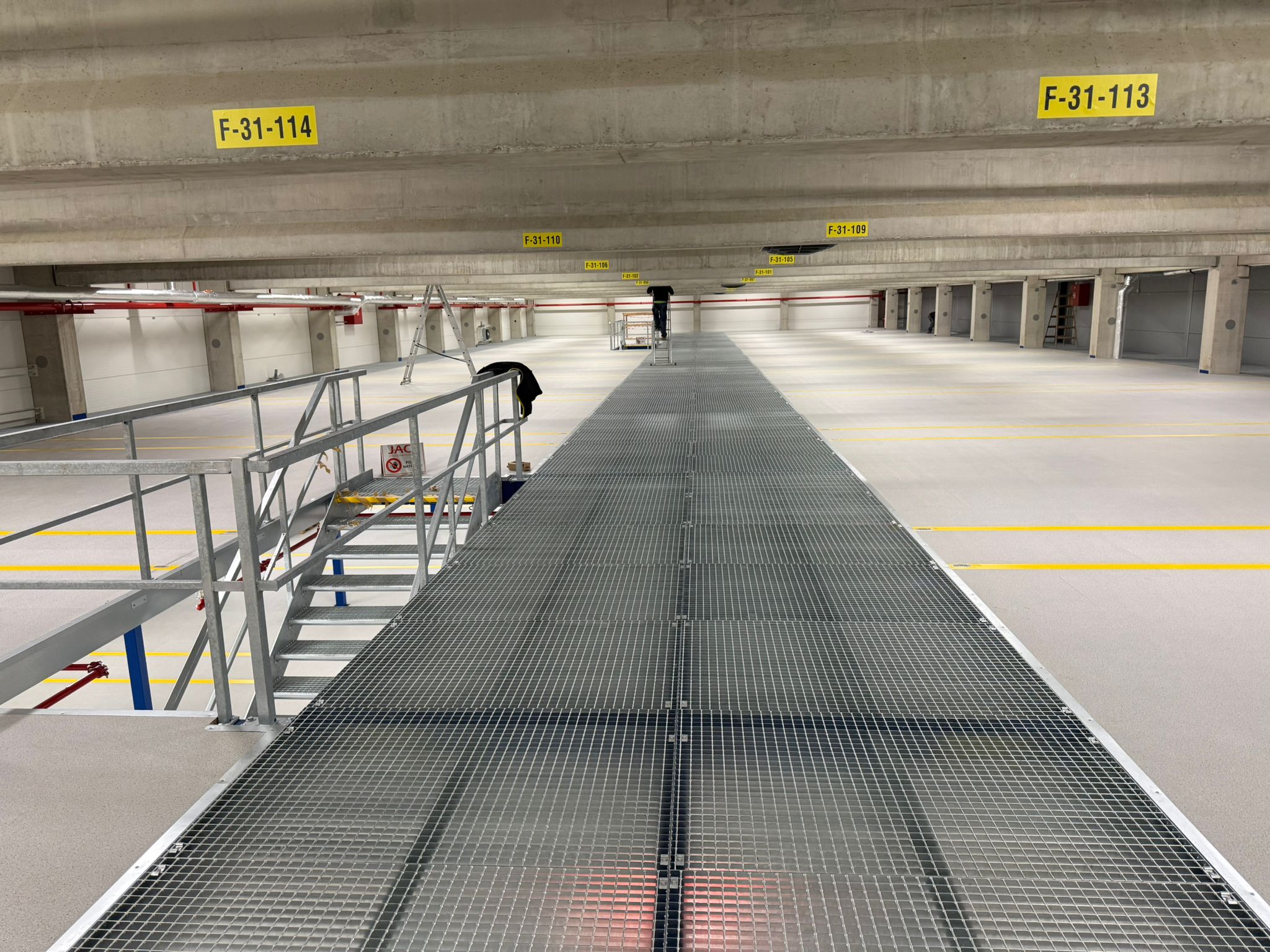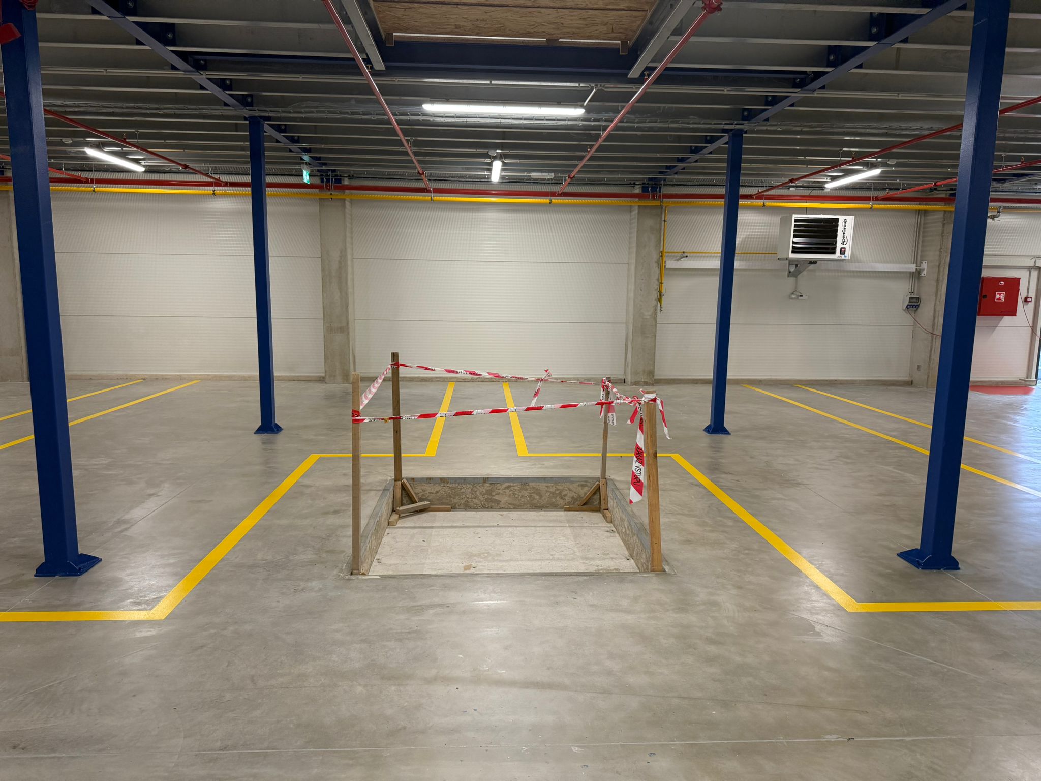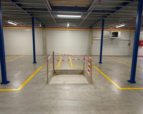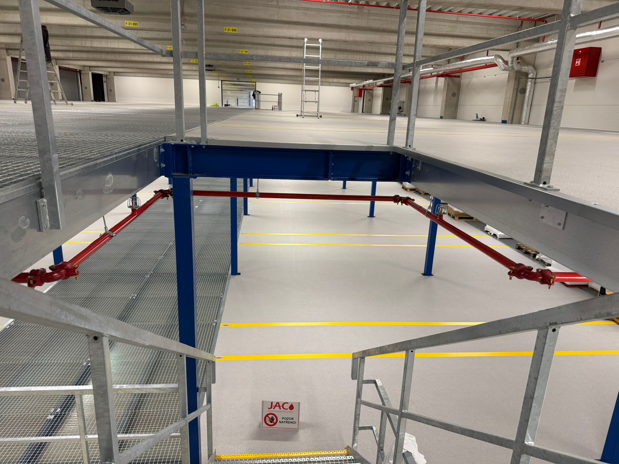 Durchführung der Bodensicherheitskennzeichnung in den Mezzaninbereichen der Logistikhalle